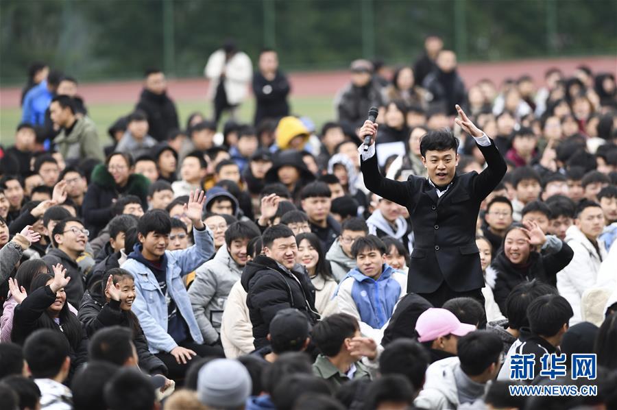 1月15日,中央歌劇院男中音歌唱家王藝清在慰問演出中與觀眾互動(dòng)。 當(dāng)日,“我們的中國夢(mèng)”——文化進(jìn)萬家中央歌劇院文藝小分隊(duì)來到重慶市石柱土家族自治縣第一職業(yè)學(xué)校進(jìn)行慰問演出,為學(xué)校的三千多名師生帶來了一場(chǎng)精彩的音樂大餐。 新華社記者 王全超 攝