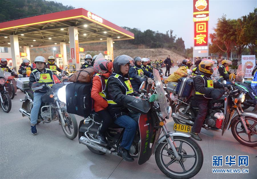 1月15日,在福建泉州,騎摩托車返鄉(xiāng)的外來務(wù)工人員啟程返鄉(xiāng)。 新華社記者 賀燦鈴 攝
