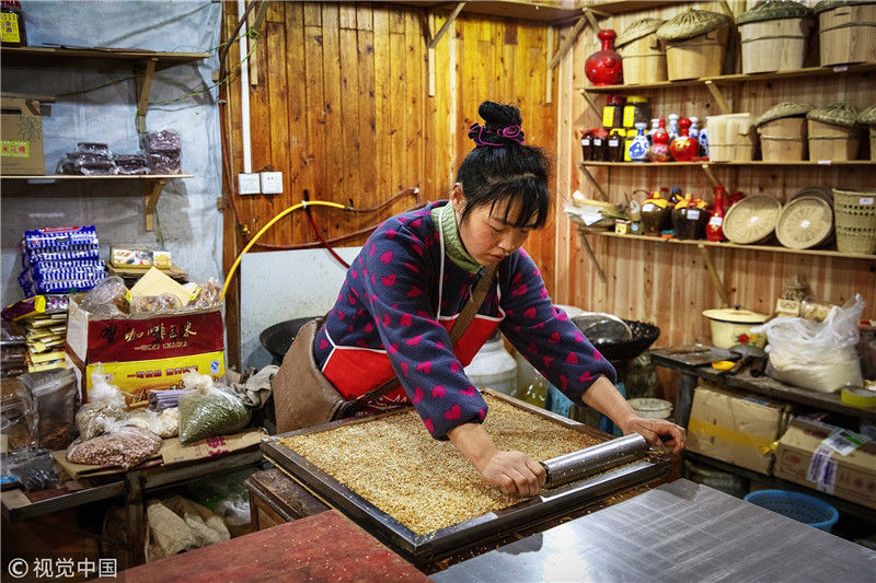 2019年1月26日,重慶中山古鎮(zhèn),880桌“千米長(zhǎng)宴”5萬(wàn)人共品年味。街坊們?cè)陬^天就開始準(zhǔn)備各種菜肴與小吃。