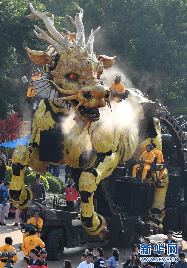 1月18日,大型機(jī)械裝置藝術(shù)品“龍馬精神”在珠海長(zhǎng)隆海洋王國巡游展示。新華社記者 劉大偉 攝