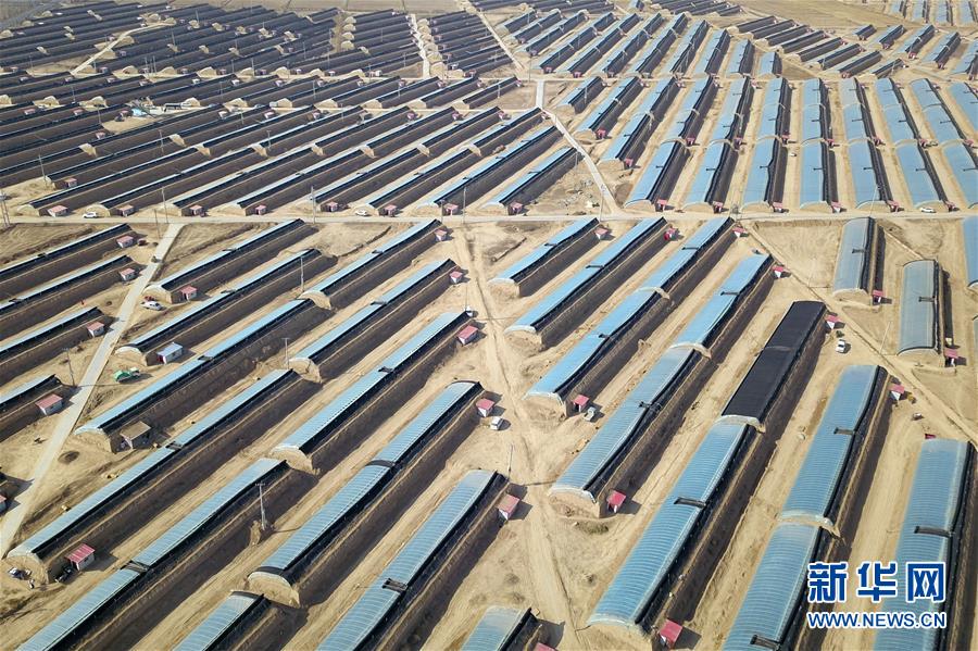 這是3月4日在靖遠(yuǎn)縣北灣鎮(zhèn)拍攝的富坪村日光溫室基地(無人機(jī)照片)。新華社記者 范培珅 攝