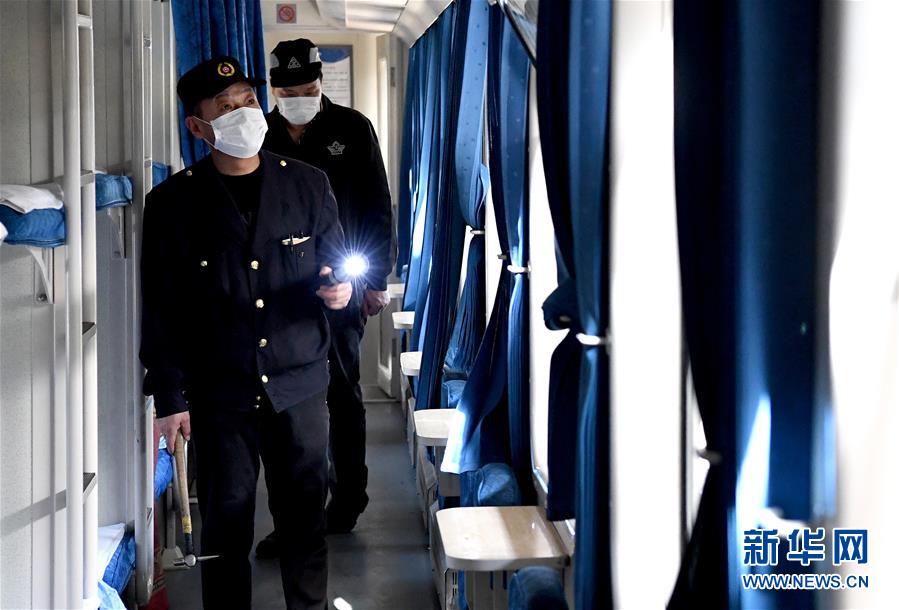 3月19日,鄭州車輛段客車檢車員王東亮(前)和劉凱在對客車上部設(shè)施的狀態(tài)進(jìn)行檢查和記錄。新華社記者 李安 攝