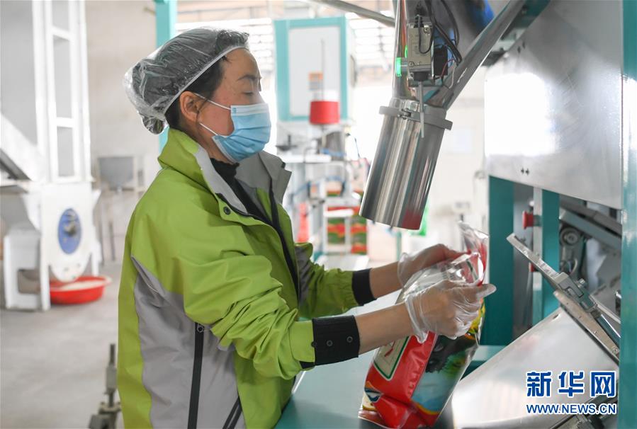 湖北當(dāng)陽(yáng)市壩陵辦事處群華村村民宋發(fā)林(右)和妻子在農(nóng)產(chǎn)品合作社包裝產(chǎn)品,準(zhǔn)備通過電商外銷(3月21日攝)。近日,湖北當(dāng)陽(yáng)市農(nóng)業(yè)生產(chǎn)和農(nóng)產(chǎn)品加工加速恢復(fù)。截至3月19日,當(dāng)陽(yáng)市86家規(guī)上農(nóng)產(chǎn)品加工企業(yè)復(fù)工復(fù)產(chǎn)率為84.9%,51家農(nóng)業(yè)產(chǎn)業(yè)化重點(diǎn)龍頭企業(yè)有48家復(fù)工復(fù)產(chǎn),占比達(dá)94.1%。新華社記者程敏攝