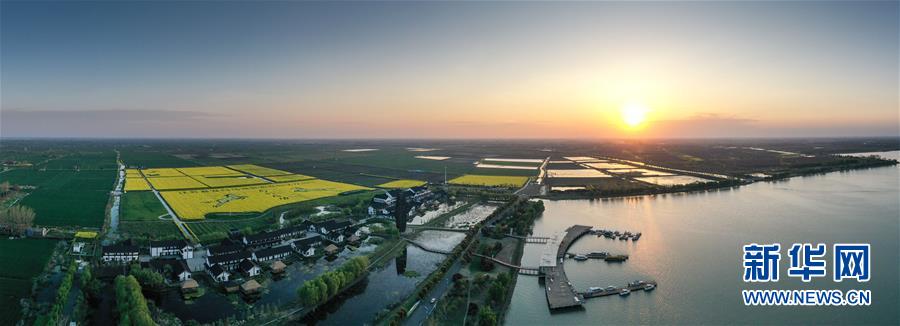 這是4月6日拍攝的白馬湖風光(無人機全景照片)。近日,江蘇省淮安市白馬湖畔春花綻放,景色怡人。白馬湖地處淮河流域下游,東貫大運河,西倚洪澤湖,南北分別銜接淮河入江水道和入海水道,湖泊水域面積113平方公里,是全國15個生態(tài)良好重點保護湖泊之一。 新華社記者 楊磊 攝