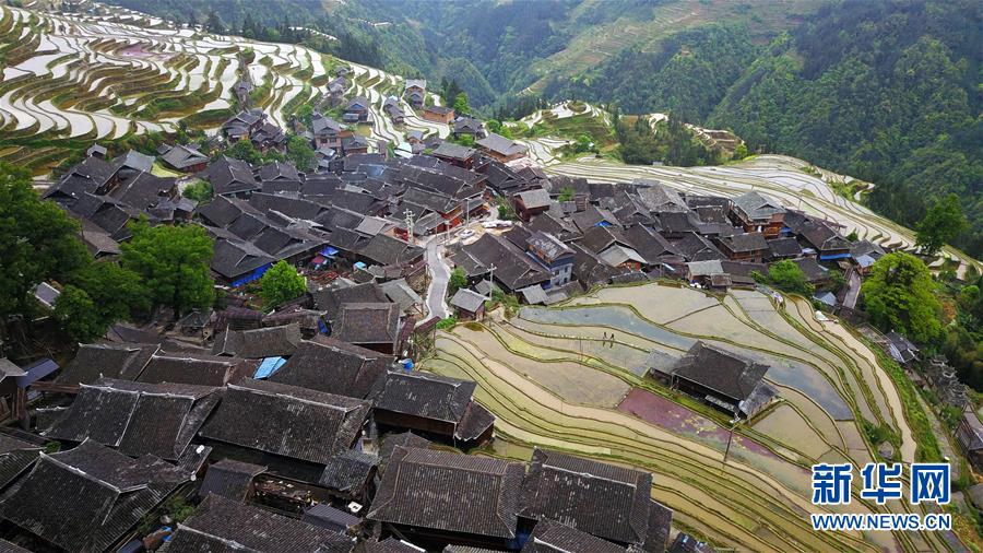 4月19日拍攝的貴州省從江縣加榜鄉(xiāng)加車村苗寨景觀(無人機(jī)照片)。貴州省從江縣把人居環(huán)境整治作為脫貧攻堅(jiān)工作的一項(xiàng)重要舉措來抓,對(duì)鄉(xiāng)村規(guī)劃范圍內(nèi)長期無人居住的危房、廢棄禾倉、棚圈、柴草房和房前屋后的殘?jiān)珨啾诘冗M(jìn)行清理整治,進(jìn)行復(fù)墾復(fù)綠,同時(shí)開展農(nóng)戶衛(wèi)生和村寨環(huán)境整治,做到鄉(xiāng)村環(huán)境干凈、衛(wèi)生、整潔,扮靚美麗鄉(xiāng)村。新華社記者楊文斌攝
