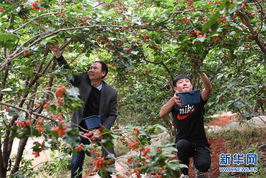 4月28日,云南省富民縣赤鷲鎮(zhèn)普橋村村民在果園摘櫻桃。云南省富民縣赤鷲鎮(zhèn)大力發(fā)展特色種植業(yè),全鎮(zhèn)種植櫻桃4000余畝,幫助當(dāng)?shù)剞r(nóng)民增收致富。新華社記者楊宗友攝