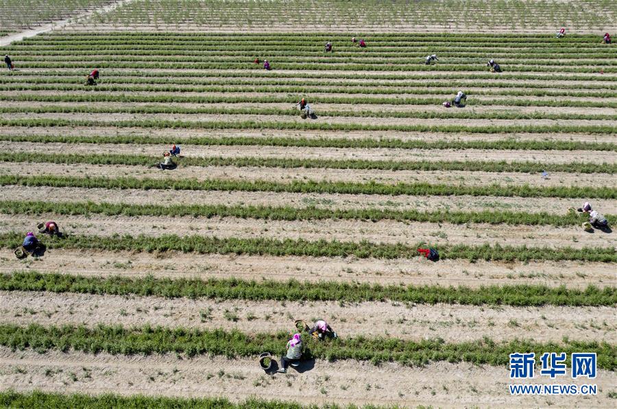 5月11日,采茶工在寧夏百瑞源賀蘭山基地采摘枸杞芽茶。當(dāng)日,寧夏百瑞源賀蘭山基地枸杞芽茶全面進(jìn)入采摘季。據(jù)了解,該基地茶園面積300余畝,助力附近200多名農(nóng)民就業(yè)增收。新華社記者楊植森攝