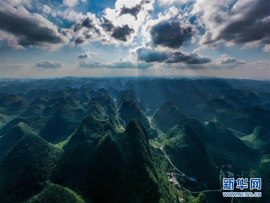 這是大化瑤族自治縣七百弄鄉(xiāng)風(fēng)光(5月14日攝,無(wú)人機(jī)照片)。新華社記者曹祎銘攝