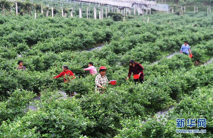 5月21日,村民在茨竹鎮(zhèn)大面坡村藍(lán)桂香園藍(lán)莓基地采摘藍(lán)莓。近日,位于重慶市渝北區(qū)茨竹鎮(zhèn)大面坡村的600余畝藍(lán)莓陸續(xù)進(jìn)入采摘期。近年來,茨竹鎮(zhèn)探索“公司+基地+農(nóng)戶”的模式,利用良好的自然條件,積極發(fā)展高山藍(lán)莓產(chǎn)業(yè),在取得良好經(jīng)濟(jì)效益的同時(shí),有效帶動(dòng)當(dāng)?shù)卮迕窬蜆I(yè)增收。新華社記者王全超攝