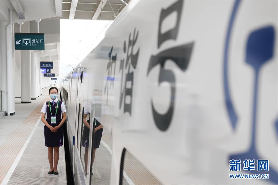 5月27日,試運(yùn)行檢查確認(rèn)列車乘務(wù)人員在商合杭高鐵宣城站。新華社記者張端攝