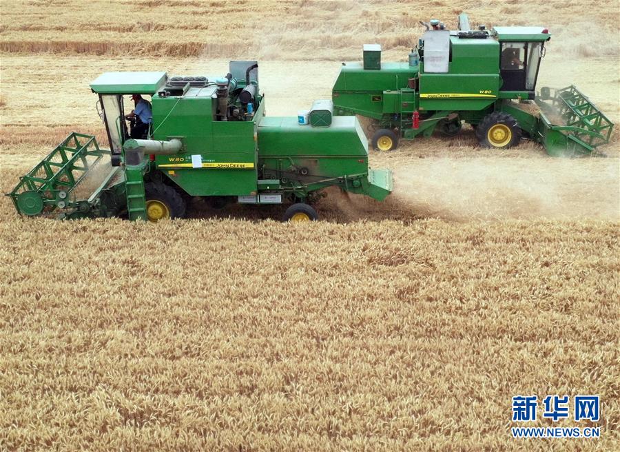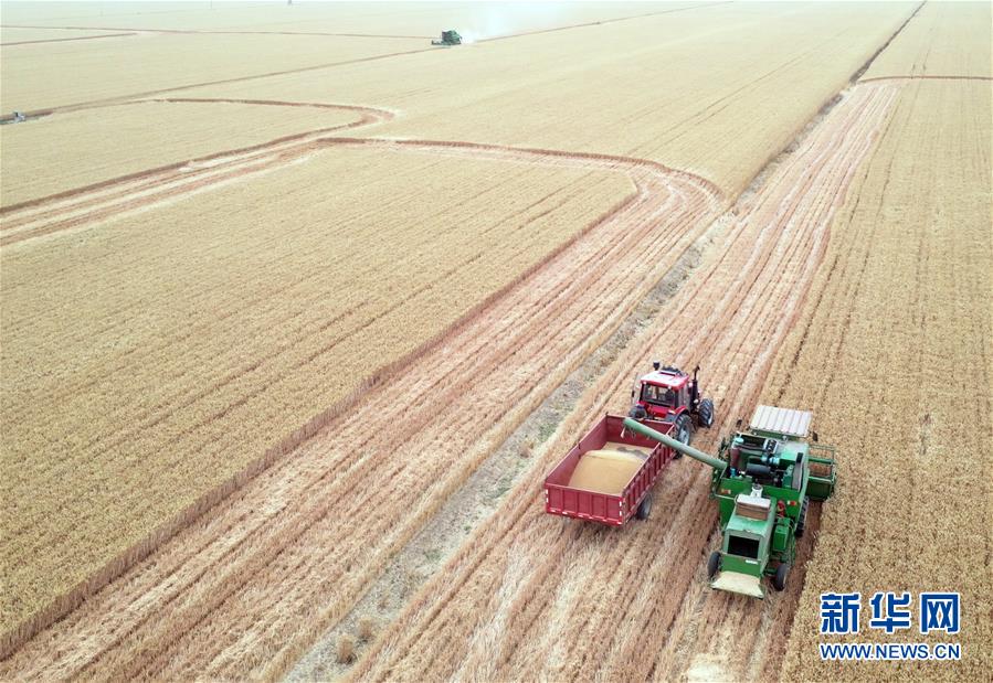 “三夏”時節(jié),中原大地一片金黃。位于河南省周口市的黃泛區(qū)農(nóng)場機聲隆隆,10萬畝小麥收獲正酣。