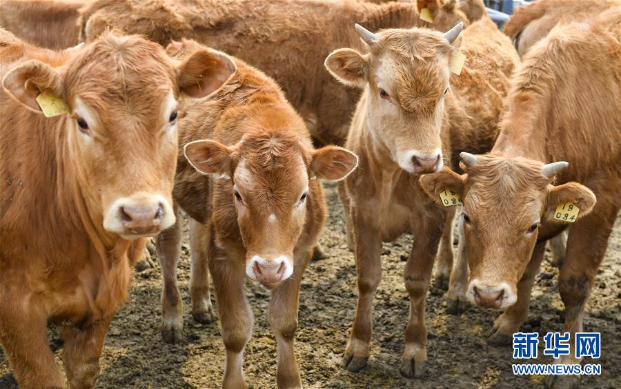 在延邊朝鮮族自治州龍井市犇福牧場內(nèi)拍攝的黃牛(4月16日攝)。新華社記者許暢攝。
