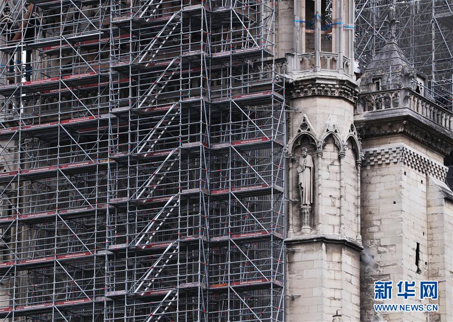 這是6月9日在法國巴黎拍攝的正在進行腳手架拆除工作的巴黎圣母院。法國巴黎圣母院于8日開始拆除去年大火中被焚的腳手架。作為巴黎圣母院修復(fù)工作的重要組成部分,這項工程預(yù)計將持續(xù)至少3個月。2019年4月15日,巴黎圣母院遭遇大火,當時圣母院正在進行維修,搭建的腳手架在火災(zāi)中損毀、變形。新華社記者高靜攝
