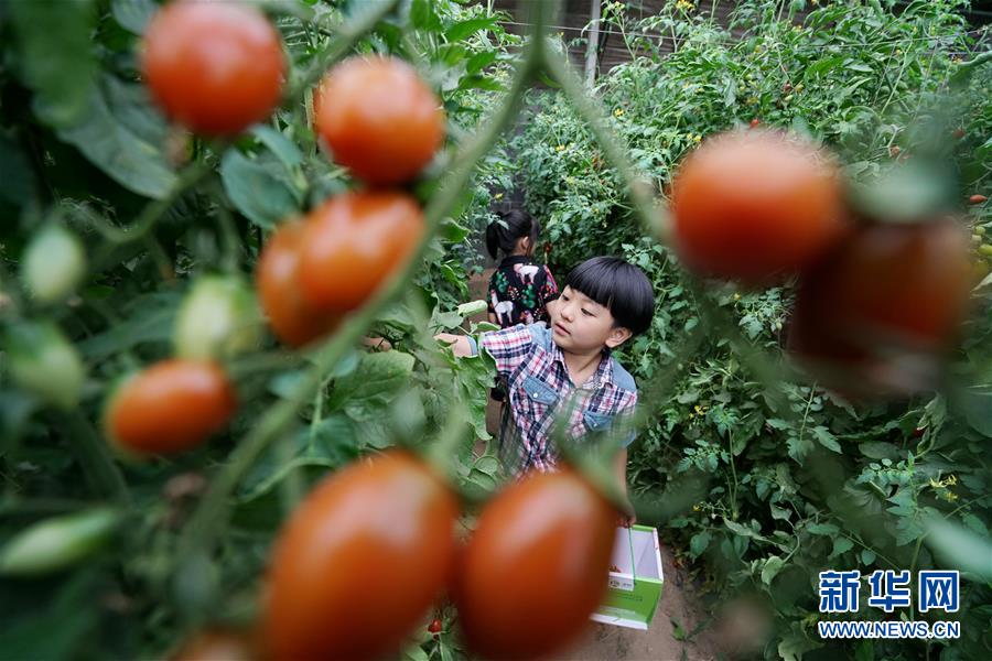 6月21日,小朋友在灤州市雷莊鎮(zhèn)吉祥現(xiàn)代農(nóng)業(yè)園區(qū)大棚內采摘櫻桃西紅柿。近年來,河北省灤州市積極調整農(nóng)業(yè)產(chǎn)業(yè)結構,鼓勵當?shù)睾献魃绾娃r(nóng)戶發(fā)展果蔬種植,豐富當?shù)剞r(nóng)產(chǎn)品種類,越來越多的農(nóng)民依靠“果園子”“菜籃子”鼓起了“錢袋子”。新華社記者牟宇攝