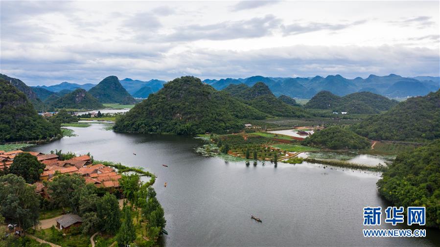 這是7月9日拍攝的普者黑國家濕地公園一景(無人機(jī)照片)。新華社記者胡超攝