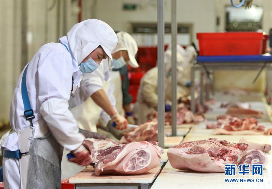 7月15日,北京二商肉類食品集團(tuán)有限公司員工在肉類分割流水線上工作。北京二商肉類食品集團(tuán)有限公司是保障北京肉類市場供應(yīng)的主要企業(yè)之一。新冠肺炎疫情以來,企業(yè)嚴(yán)格實(shí)施北京市、農(nóng)業(yè)農(nóng)村部和中國肉類協(xié)會(huì)的防疫要求,對(duì)進(jìn)入廠區(qū)的人員、車輛以及原料采購、屠宰分割、產(chǎn)品加工、貯藏運(yùn)輸、廢棄物收集及污水處理等生產(chǎn)環(huán)節(jié)嚴(yán)格防疫,強(qiáng)調(diào)源頭把關(guān)徹底消毒。目前,集團(tuán)公司下屬多家生豬屠宰加工基地正常運(yùn)營,保質(zhì)保量供應(yīng)北京市場需求。新華社記者 李欣 攝