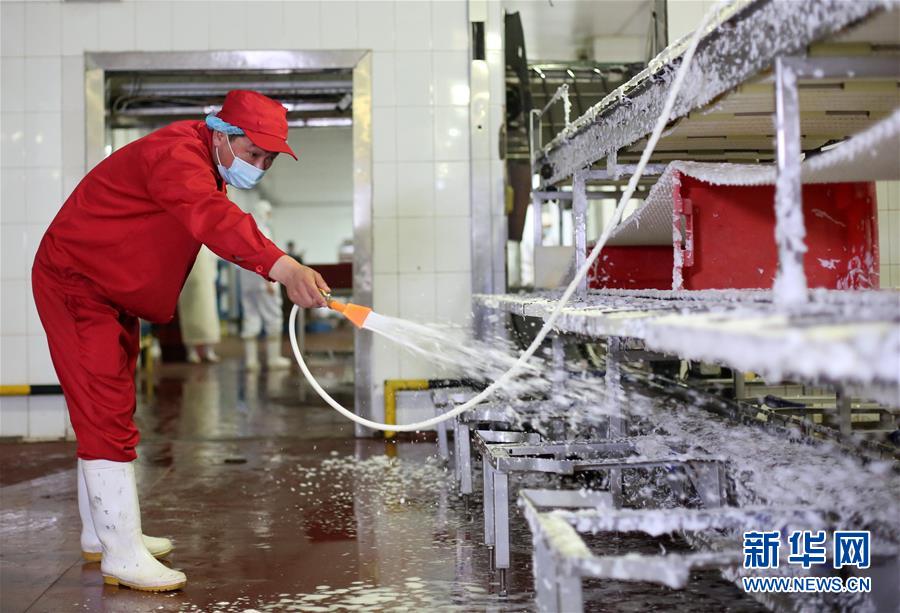 7月14日,北京二商肉類食品集團(tuán)有限公司員工對(duì)肉類分割流水線進(jìn)行清洗消毒。北京二商肉類食品集團(tuán)有限公司是保障北京肉類市場供應(yīng)的主要企業(yè)之一。新冠肺炎疫情以來,企業(yè)嚴(yán)格實(shí)施北京市、農(nóng)業(yè)農(nóng)村部和中國肉類協(xié)會(huì)的防疫要求,對(duì)進(jìn)入廠區(qū)的人員、車輛以及原料采購、屠宰分割、產(chǎn)品加工、貯藏運(yùn)輸、廢棄物收集及污水處理等生產(chǎn)環(huán)節(jié)嚴(yán)格防疫,強(qiáng)調(diào)源頭把關(guān)徹底消毒。目前,集團(tuán)公司下屬多家生豬屠宰加工基地正常運(yùn)營,保質(zhì)保量供應(yīng)北京市場需求。新華社記者 李欣 攝