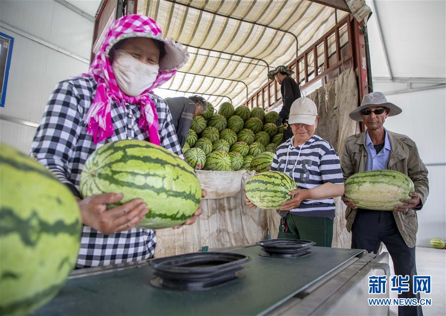 7月16日,在寧夏中衛(wèi)市香山鄉(xiāng)硒砂瓜自動分選中心,瓜農將硒砂瓜放到自動篩選設備傳送帶上。近日,寧夏中衛(wèi)市迎來硒砂瓜豐收季。硒砂瓜是中衛(wèi)市的特色農產(chǎn)品,近年來,當?shù)夭扇〖夹g創(chuàng)新、規(guī)?;N植、休耕輪作等多項舉措,讓硒砂瓜種植成為當?shù)剞r民增收致富的重要產(chǎn)業(yè)。據(jù)了解,今年中衛(wèi)市硒砂瓜種植面積為69.7萬畝。新華社記者楊植森攝
