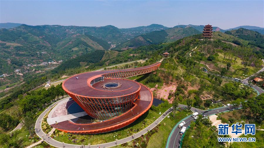 這是6月15日拍攝的四川省成都市龍泉山城市森林公園丹景山觀景臺(無人機(jī)照片)。新華社記者王曦攝