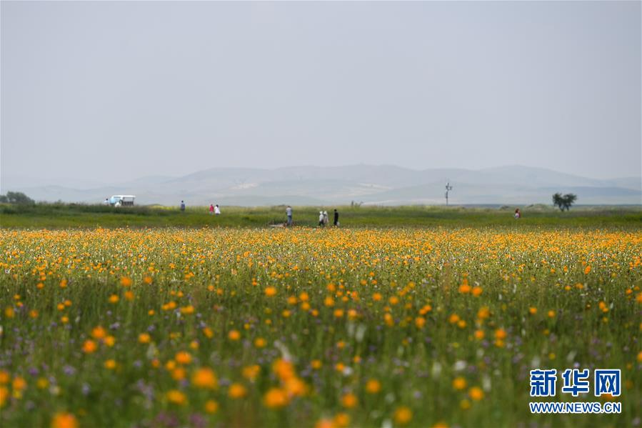 7月22日,游客在金蓮川草原上游玩。金蓮川草原位于內(nèi)蒙古自治區(qū)錫林郭勒盟正藍(lán)旗,正值盛夏,金蓮川草原上鮮花綻放,景色宜人。新華社記者徐欽攝
