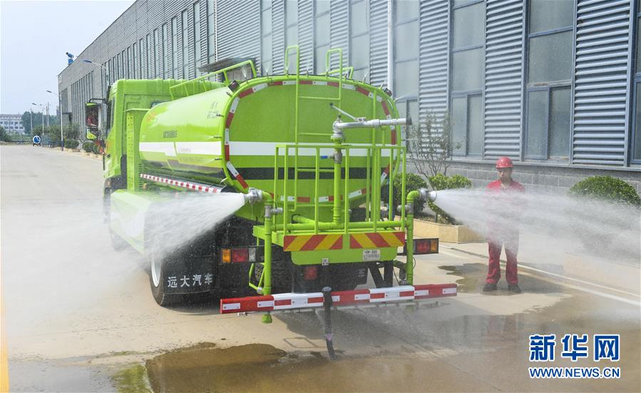 7月27日,河北景縣開發(fā)區(qū)一家新能源汽車制造公司工人在對增程式新能源灑水車進(jìn)行性能校驗。新華社記者 李曉果 攝