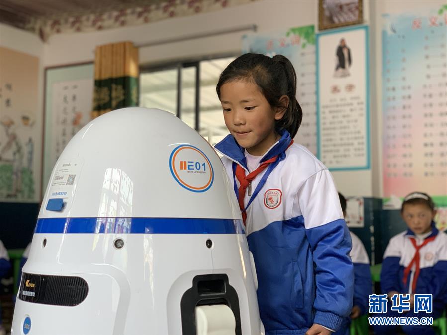 拉孜鄉(xiāng)中心小學學生在與智能機器人對話(7月29日攝)。新華社記者洛卓嘉措攝