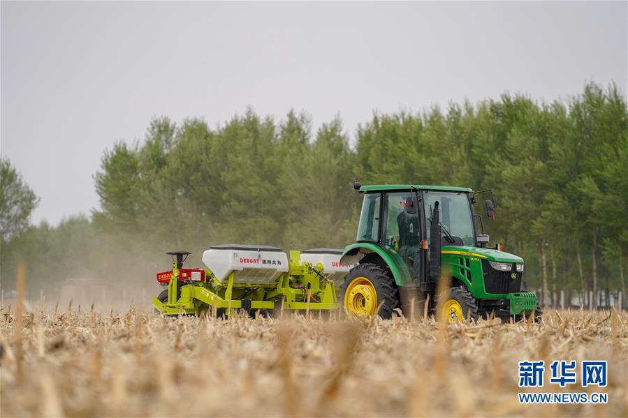 5月7日,在吉林省梨樹縣,農(nóng)民駕駛免耕播種機播種玉米。新華社記者張楠攝