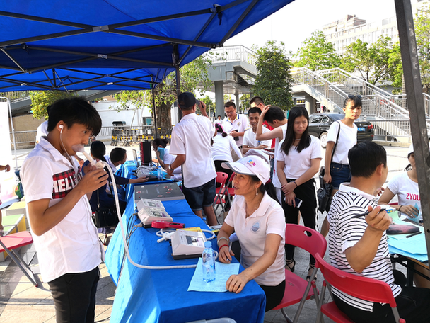 本次《大講堂》活動走進(jìn)觀瀾福誠街道章閣社區(qū),向社區(qū)居民傳遞健康。白衣天使們不顧炎熱的天氣,用肺活量測試儀、握力測試儀、縱跳計(jì)測試儀等設(shè)備為社區(qū)居民進(jìn)行免費(fèi)體測;深圳獅子會代繼宏先生現(xiàn)場為大家進(jìn)行了糖尿病預(yù)防知識的宣教。據(jù)悉,深圳獅子會致力于關(guān)愛社區(qū)群眾,傳遞健康環(huán)保知識,為社區(qū)居民舉辦健康大講堂,推動健身熱潮,并組織社區(qū)居民進(jìn)行體質(zhì)監(jiān)測等多種形式的知識宣講,促進(jìn)社區(qū)和諧建設(shè)。