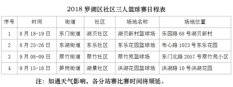 “2018羅湖區(qū)社區(qū)三人籃球賽”分成四個分站賽。目前,羅湖區(qū)東門街道湖貝社區(qū)的“東門站”首場分站賽已決出勝負(fù),接下來的三個分站賽地點(diǎn)分別是羅湖區(qū)東湖街道東樂社區(qū)、羅湖區(qū)翠竹街道翠竹社區(qū)和羅湖區(qū)筍崗街道湖景社區(qū)。