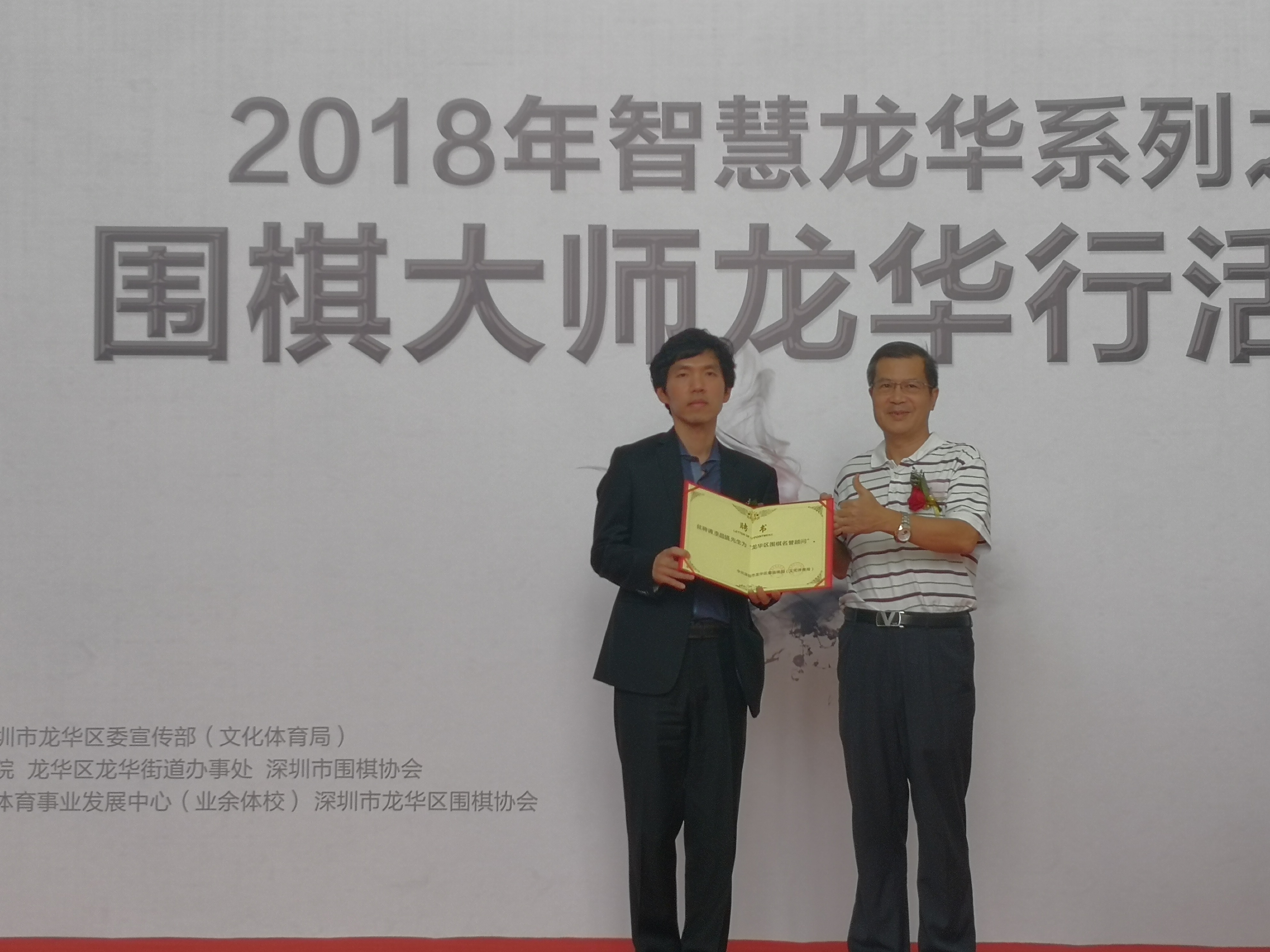 開(kāi)幕式上,龍華區(qū)委副書記苗寧禮,龍華區(qū)委常委、宣傳部長(zhǎng)黃啟鍵及區(qū)文化體育局相關(guān)負(fù)責(zé)人等在百忙中前來(lái)為“智慧龍華”捧場(chǎng)加油。活動(dòng)在輕松熱鬧的歌舞中拉開(kāi)帷幕,文化體育局負(fù)責(zé)人在致辭中對(duì)諸位圍棋大師的到來(lái)表示熱烈的歡迎,對(duì)活動(dòng)擴(kuò)大中華圍棋文化的傳播,推動(dòng)龍華區(qū)圍棋的發(fā)展給予了充分的肯定。隨后,黃啟健常委代表龍華區(qū)聘請(qǐng)李昌鎬大師擔(dān)任龍華區(qū)圍棋發(fā)展的名譽(yù)顧問(wèn)并頒發(fā)了證書,李昌鎬則回贈(zèng)了簽名棋盤。緊接著,孔杰老師也給參加活動(dòng)的小棋手贈(zèng)予了簽名棋盤。在廣東圍棋總冠軍佟云老師簡(jiǎn)要介紹李昌鎬、孔杰的精采圍棋經(jīng)歷之后,活動(dòng)主持人還現(xiàn)場(chǎng)采訪了李昌鎬、孔杰,就兩人圍棋從業(yè)過(guò)程中的難記經(jīng)歷、精采賽事以及對(duì)人工智能圍的展望等進(jìn)行了提問(wèn),兩位大師的回答坦率、誠(chéng)懇,贏得了現(xiàn)場(chǎng)觀眾的陣陣掌聲?;顒?dòng)的高潮是李昌鎬、孔杰、車澤武、張亞博四位老師與龍華區(qū)的圍棋愛(ài)好者進(jìn)行多面打的活動(dòng),梁偉棠九段和徐瑩老師還進(jìn)行掛盤講解。