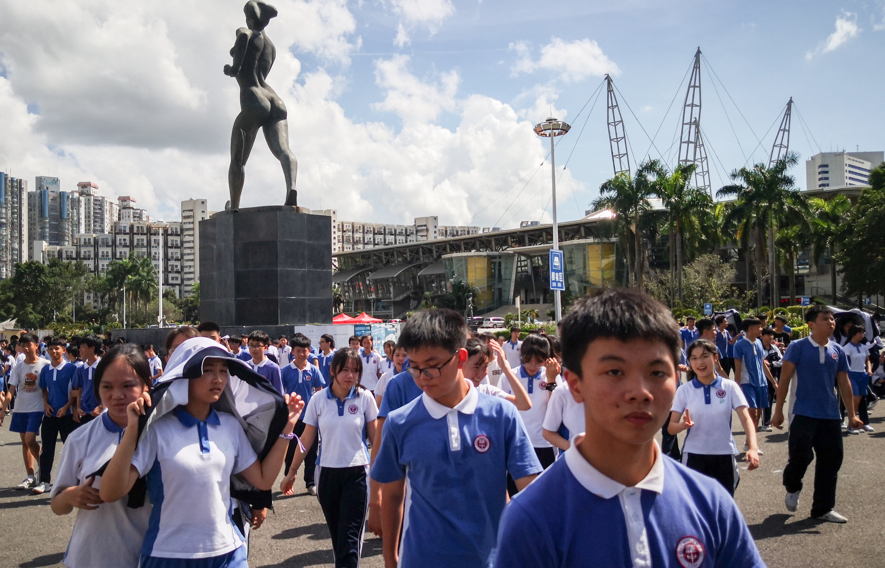 參演的600多名師生有序疏散到廣場(chǎng)安全區(qū)域