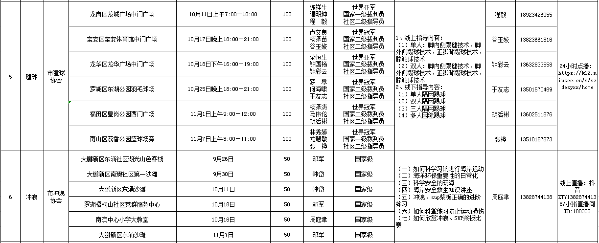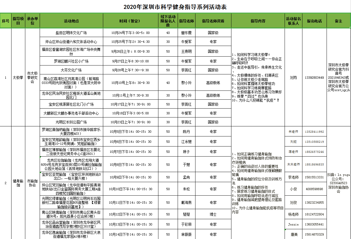 “科學健身指導活動”由深圳市文化廣電旅游體育局主辦,旨在通過分批、分點等方式,在做好疫情防控的同時,針對不同人群進行戶外健身運動個性化指導服務,助力全市煥發(fā)新活力,促進全民健身高質(zhì)量發(fā)展?;顒幼?月2日啟動以來,已有眾多一線社會體育指導員和體育產(chǎn)業(yè)專家通過深入社區(qū)現(xiàn)場教學、錄制視頻等方式,向廣大市民宣傳、講解科學健身的知識和方法。