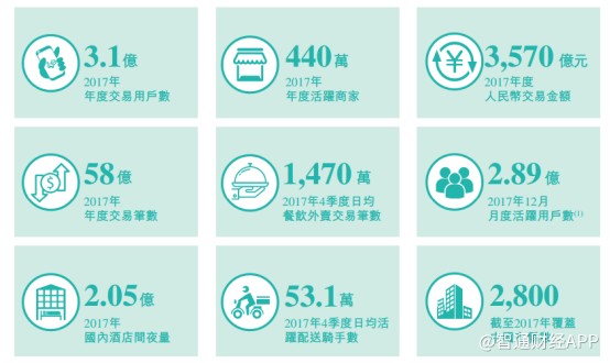 智通財(cái)經(jīng)APP觀察到,2017年美團(tuán)交易額達(dá)到3570億元,同時(shí)公司還擁有3.1億年交易用戶(hù)以及440萬(wàn)活躍商家。此外,2017年公司MAU數(shù)據(jù)已達(dá)2.89億。