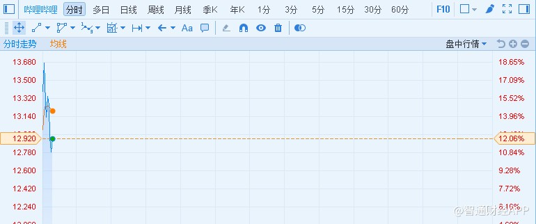 B站開(kāi)盤(pán)漲超18%,現(xiàn)報(bào)12.92美元,漲12.06%。