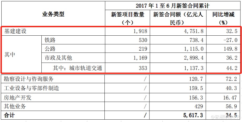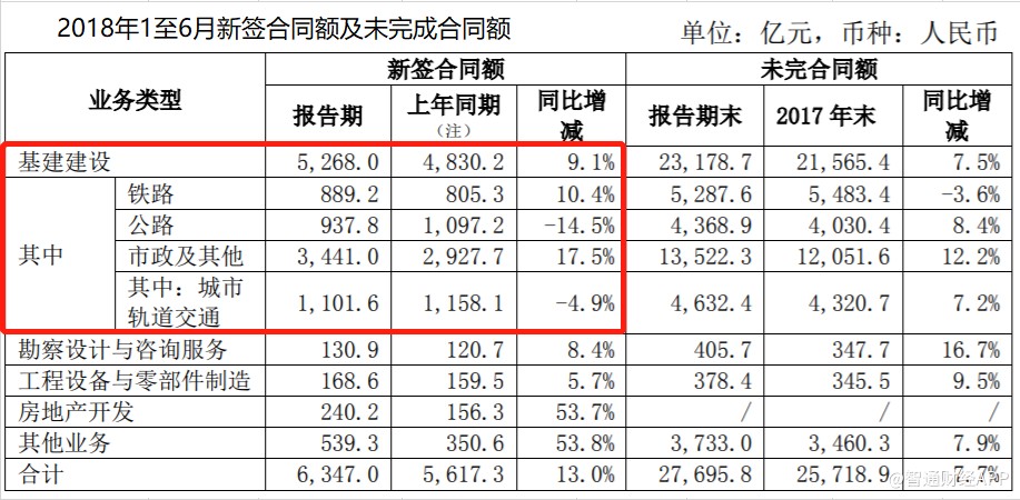 今年上半年,中國中鐵基建建設業(yè)務新簽合同5268億元,同比增長9.1%,盡管依然維持增長,但增速較2017年上半年的32.5%大幅放緩,其中公路及城市軌道交通新簽合同額錄得負增長。