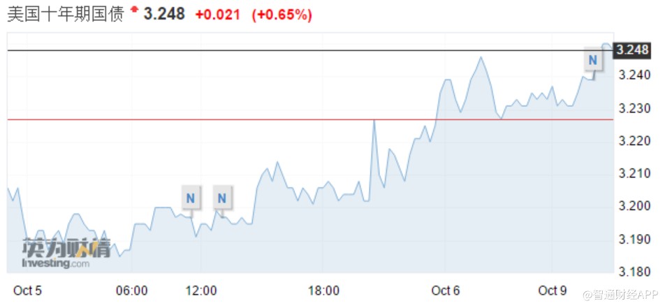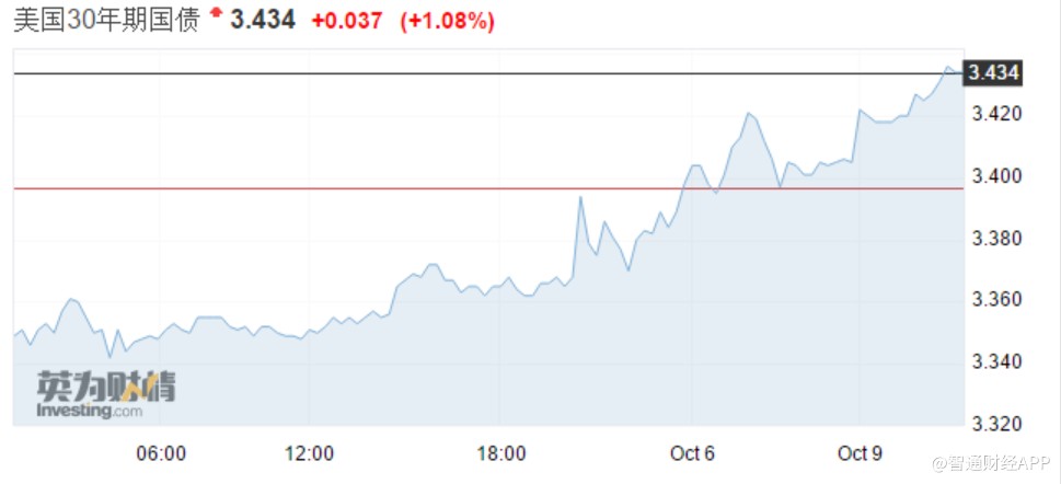 美債持續(xù)遭遇拋售,收益率沖高勢(shì)頭不減。智通財(cái)經(jīng)APP獲悉,周二亞市早盤,美國30年期國債收益率觸及3.434%,再度刷新四年新高。10年期美債收益率升至3.248%,刷新七年新高。昨日美債市場因哥倫布日休市一天。