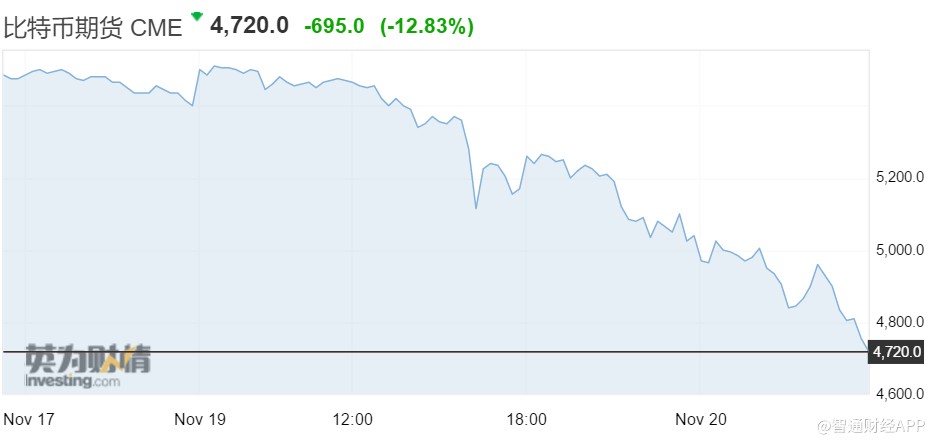 智通財(cái)經(jīng)APP獲悉,因悲觀情緒持續(xù)存在,比特幣在幣值跌破6000美元長達(dá)一周之后,昨日又暴跌12.83%,跌破5000美元關(guān)口,報(bào)4720美元。過去7天,比特幣跌超22%;今年以來累跌60%以上;與歷史高點(diǎn)相比累跌70%以上。