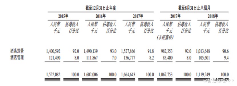 招股書顯示,截至2018年8月底,公司酒店經(jīng)營業(yè)務(wù)下?lián)碛?1家酒店,其中29家租賃酒店和2家自營酒店;公司酒店管理業(yè)務(wù)下?lián)碛?09家酒店,其中96家為全方位服務(wù)管理酒店及13家特許經(jīng)營酒店。