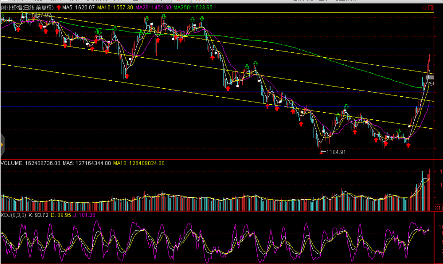 周三兩市股指延續(xù)強(qiáng)勢(shì)震蕩上行,上證綜指收漲1.57%報(bào)3102.1點(diǎn),深證成指漲1.09%站上9700點(diǎn),創(chuàng)業(yè)板指漲1.43%突破1700點(diǎn),兩市巨量成交1.1062萬(wàn)億元,環(huán)比增加2098億元,為2015年11月以來新高。盤面上板塊個(gè)股繼續(xù)普漲,中小盤題材股仍然漲勢(shì)如潮。邊緣計(jì)算、券商、軟件、傳媒及汽車板塊漲幅居前;兩市共有185只個(gè)股封死漲停板,漲停家數(shù)較上個(gè)交易日小幅減少,個(gè)股漲停分布在券商、軟件、傳媒和汽車等板塊中較多。