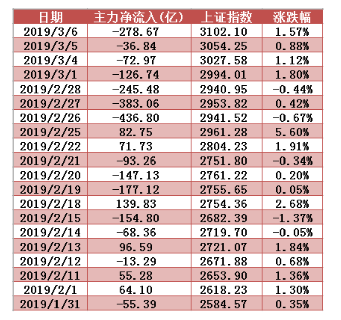 近20個(gè)交易日兩市主力資金凈流入額變動(dòng)圖表: