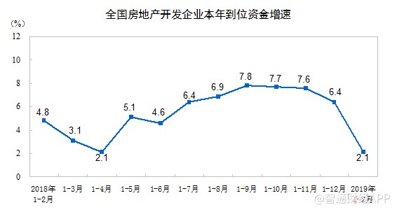 1-2月份,房地產(chǎn)開發(fā)企業(yè)到位資金24497億元,同比增長2.1%,增速比2018年全年回落4.3個(gè)百分點(diǎn)。其中,國內(nèi)貸款4976億元,下降0.5%;利用外資52億元,增長3.3倍;自籌資金7279億元,下降1.5%;定金及預(yù)收款7366億元,增長5.6%;個(gè)人按揭貸款3458億元,增長6.5%。