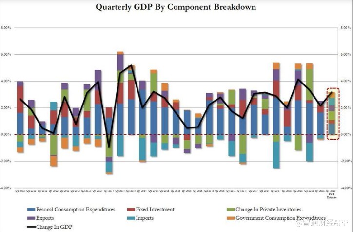 智通財經(jīng)APP獲悉,美國第一季度GDP增長3.2%,遠高于預(yù)期的2.5%,并且創(chuàng)自2015年以來最高第一季度增速。