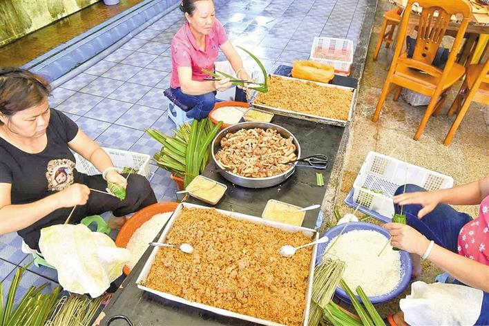 包海膽粽的方法都靠耳濡目染的傳承,這些包粽師傅從六七歲開始包海膽粽。