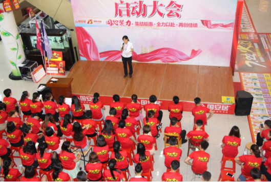 7月3日下午,紅色的T恤覆蓋了國安居各店商場,“7.22國安居15周年大慶”啟動大會在國安居各店正式落下帷幕。為確保全員工作執(zhí)行到位,運行流暢,國安居各店店總及各店策劃負責人,先后做了本次大慶企劃活動及推廣執(zhí)行方案的細致說明,各店參會的商戶老板、銷售精英及國安居員工對此次活動的推廣形式與方向感到更加明確了,對于此次大慶活動的開展更是充滿了期待與信心。