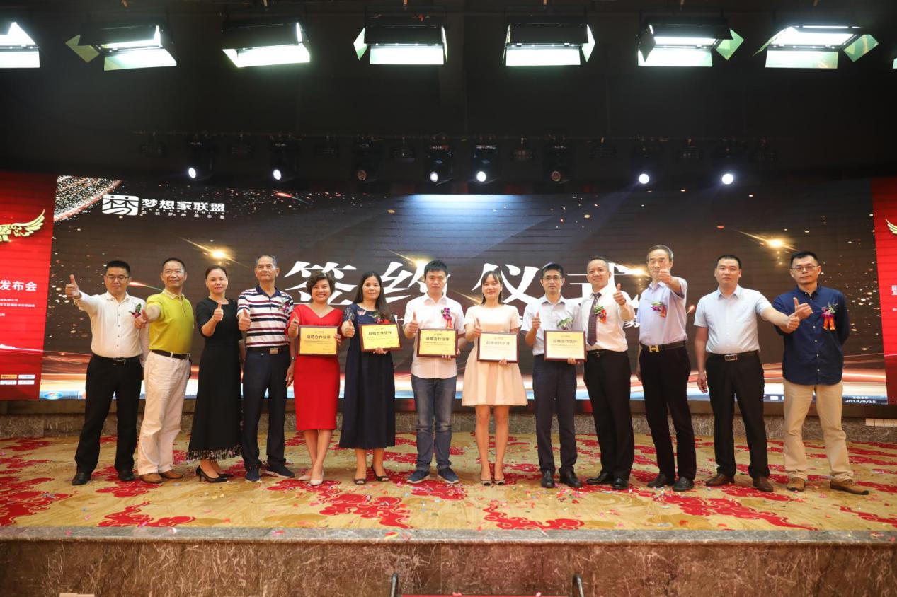 在接下來的授牌儀式中,夢想家聯(lián)盟分別同深圳市沃爾核材股份有限公司、匯天控股智匯??萍加邢薰尽⑸钲谠浦欠娇萍?、佳得寶家居、善之泉環(huán)??萍己炗喠藨?zhàn)略合作協(xié)議并授牌。