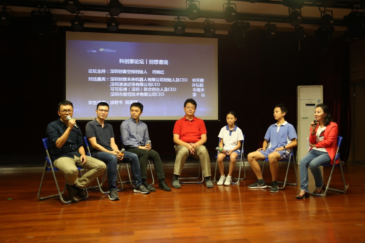 活動(dòng)以“人工智能——科幻未來(lái)”為主題,邀請(qǐng)到了人工智能領(lǐng)域的科學(xué)家,優(yōu)秀創(chuàng)業(yè)者等多位嘉賓通過(guò)主題分享、論壇對(duì)話以及產(chǎn)品展示體驗(yàn)等形式,給師生們帶來(lái)了一場(chǎng)人工智能的知識(shí)分享盛宴。香港中文大學(xué)深圳研究院眾創(chuàng)中心的人工智能創(chuàng)新團(tuán)隊(duì)亮相本次活動(dòng),分別是致力于機(jī)器人操作系統(tǒng) (ROS)的產(chǎn)品化技術(shù)研發(fā)和生態(tài)建設(shè),為高校及企業(yè)提供 ROS課程及技術(shù)解決方案的“深圳創(chuàng)想未來(lái)機(jī)器人有限公司”;專注于 STEAM教育的教育科技,致力于透過(guò)靈感和科技的有機(jī)結(jié)合,將最新的理念和技術(shù)帶入 STEAM教育領(lǐng)域的“可可樂(lè)博(深圳)科技有限公司”;致力于AI語(yǔ)音領(lǐng)域技術(shù)研發(fā),利用優(yōu)于行業(yè)、準(zhǔn)確率大于99.5%的聲紋識(shí)別算法,將人工智能、生物辨識(shí)與復(fù)雜行業(yè)場(chǎng)景進(jìn)行深度融合的“深圳市聲揚(yáng)科技有限公司”。分別在活動(dòng)中做了精彩的主題演講、學(xué)生互動(dòng)及產(chǎn)品展示。