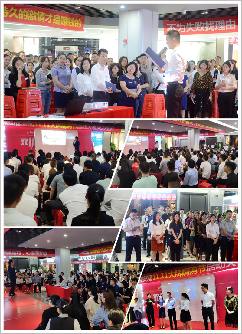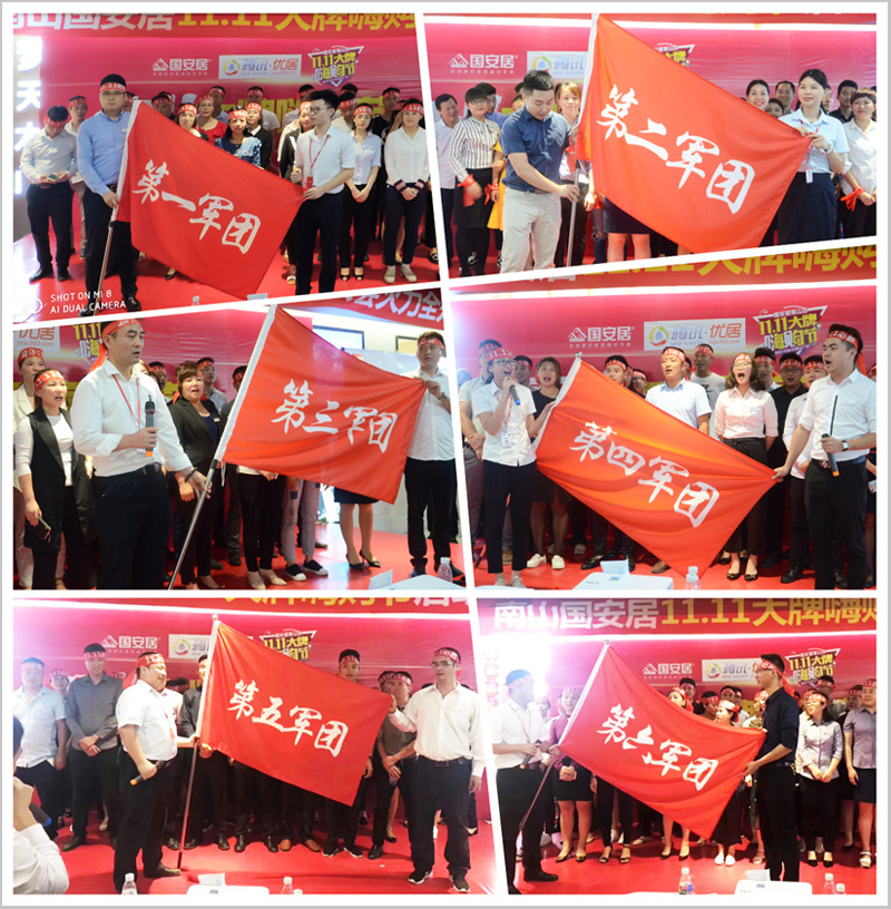 隨后,來自南山店全體方陣隊員高舉隊旗,高喊口號,將現(xiàn)場氣氛推向高潮,品牌代表們紛紛上臺發(fā)言,幾百家建材家具品牌以第一軍團(tuán)、第二軍團(tuán)、第三軍團(tuán)、第四軍團(tuán)、等等團(tuán)隊方陣,登場亮相,高呼團(tuán)隊口號,并且當(dāng)場簽署了“雙11大促”的軍令狀,并從商場負(fù)責(zé)人手中接過了“雙11大促”的軍旗,這將預(yù)示著“國安居南山店&騰訊優(yōu)居雙11大牌嗨購節(jié)”定將以卓越的佳績,創(chuàng)造新一輪的銷售盛況!