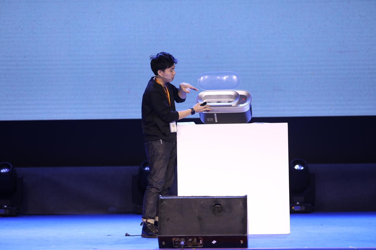 10件作品的設(shè)計(jì)師全部完成作品答辯后,7位評(píng)委進(jìn)入評(píng)審室進(jìn)行統(tǒng)計(jì)結(jié)果復(fù)議。在此期間,首屆金箍棒國(guó)際設(shè)計(jì)大獎(jiǎng)賽金獎(jiǎng)得主賈鵬,以及金箍棒工業(yè)產(chǎn)品設(shè)計(jì)江陰有限公司運(yùn)營(yíng)總監(jiān)何田鑫分別上臺(tái),為現(xiàn)場(chǎng)觀眾帶來產(chǎn)品設(shè)計(jì)和創(chuàng)業(yè)理念方面的分享,獲得了現(xiàn)場(chǎng)的陣陣掌聲。