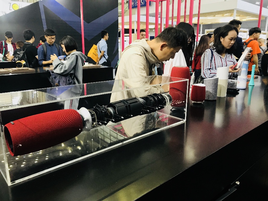 現(xiàn)場展出的小雅AI音箱是國內(nèi)首款全內(nèi)容智能音箱,是洛可可為喜馬拉雅所設(shè)計(jì)。設(shè)計(jì)過程中的眾創(chuàng)環(huán)節(jié)覆蓋了37.5萬用戶,2.5萬用戶直接參與。洛可可助力喜馬拉雅將內(nèi)容載體從APP“搬到了”產(chǎn)品中,拉開了國內(nèi)音箱創(chuàng)新變革的帷幕。而現(xiàn)場展出的曉雅mini AI音箱則是迭新之作,產(chǎn)品的底部使用穩(wěn)定的三腳支撐設(shè)計(jì),減小與桌面的接觸面積,有效避免共振現(xiàn)象引起的音質(zhì)受損。