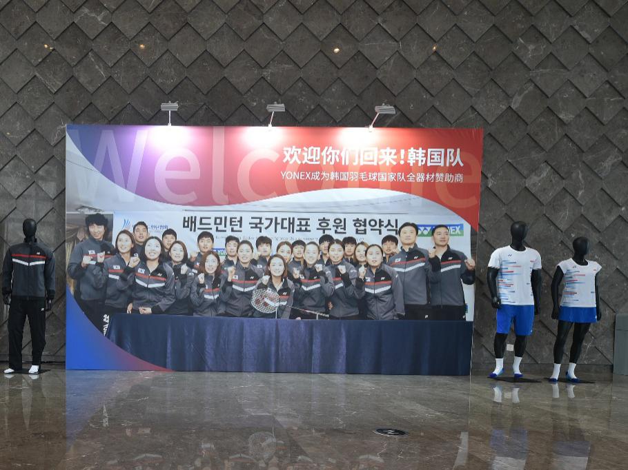 在此次的活動中,一進門就能看到一張巨型的韓國隊全家福。原來早在1月7日YONEX正式宣布與韓國國家隊簽訂合作協(xié)議,而韓國隊也將使用YONEX產(chǎn)品征戰(zhàn)接下去的各大比賽。